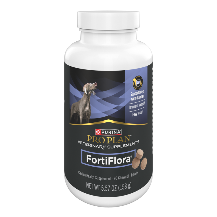 Made with the same probiotic strain in FortiFlora, and contains prebiotic fiber (psyllium) to stimulate the growth of specific bacteria including Lactobacillus and Bifidobacterium species. Only available through your veterinarian or Pro Plan® Vet Direct.